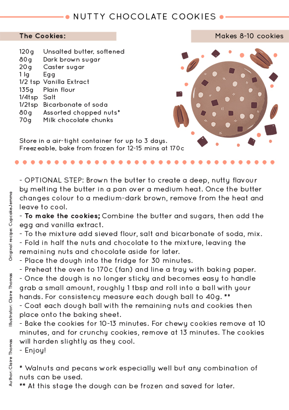 This recipe for a loaded nut and chocolate cookie is a modified version of one by YouTube great CupcakeJemma. While Jemma’s original recipe is delicious (and I’d totally recommend checking it out, and her many other recipes too) I’ve cut back on the sugar and chocolate to reduce the sweetness and let the nutty flavour take precedence.